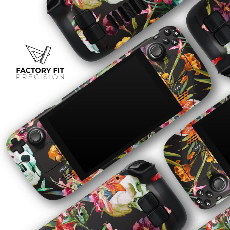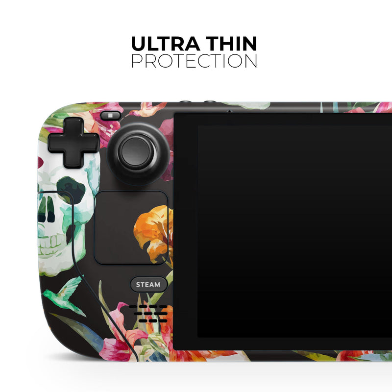 Tropical Skull Floral // Full Body Skin Decal Wrap Kit for the Steam Deck handheld gaming computer